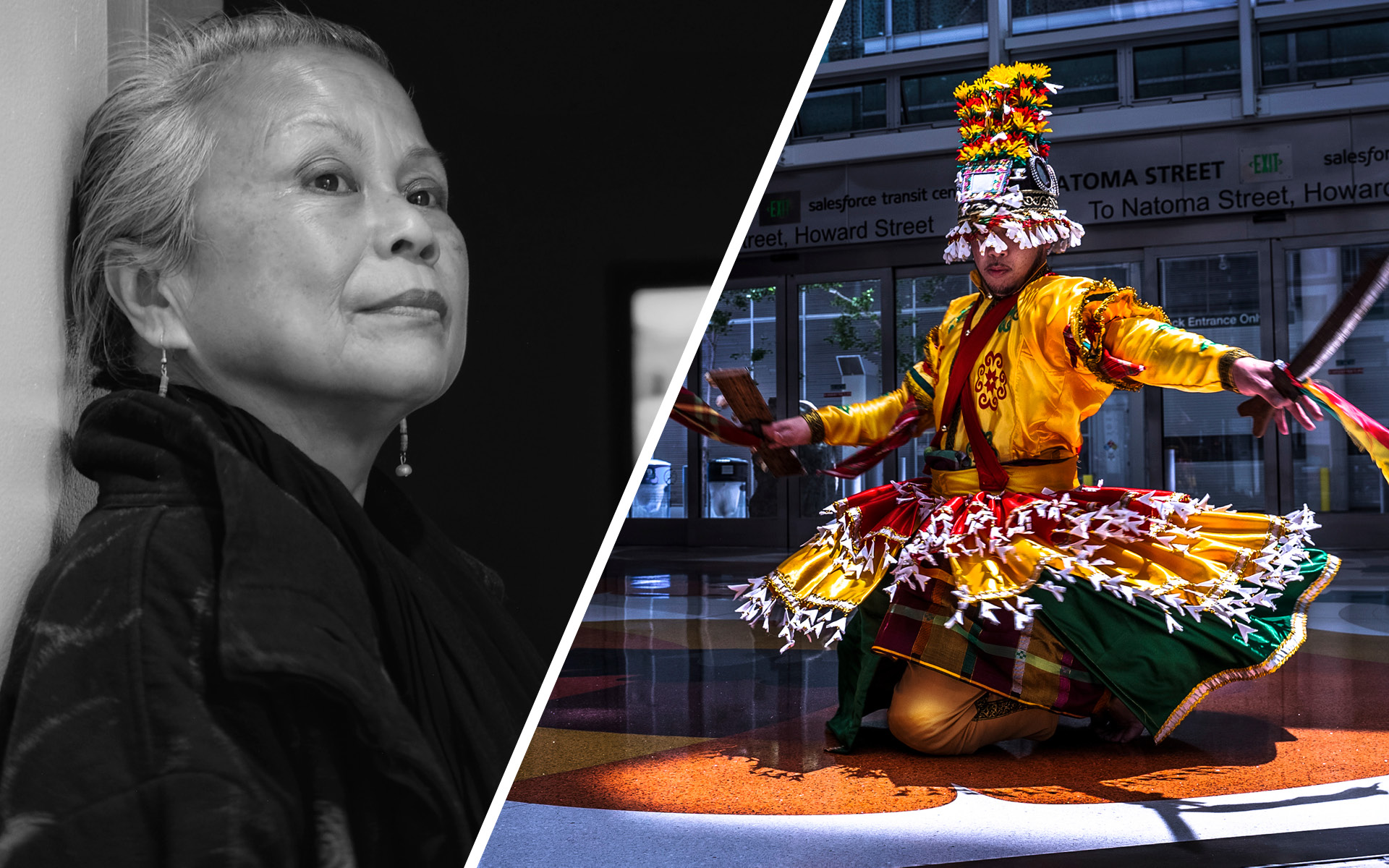 Images: L: Alleluia Panis. R: Sagayan performance by Jonathan M. Mercado. Photo by Amani Marina. Image courtesy of Parangal Dance Company.