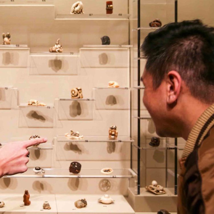 Pocket-sized artworks never fail to fascinate. Explore the enduring appeal of intricately carved netsuke (mini-sculptures in ivory, horn, and bone), delicately inlaid inro (small boxes designed to hang from a kimono belt), and sophisticated sword fittings from Japan. Marvel at tiny precious-stone snuff bottles from China, fashioned into the shapes of favorite foods, and lustrous jades from across Chinese history.
