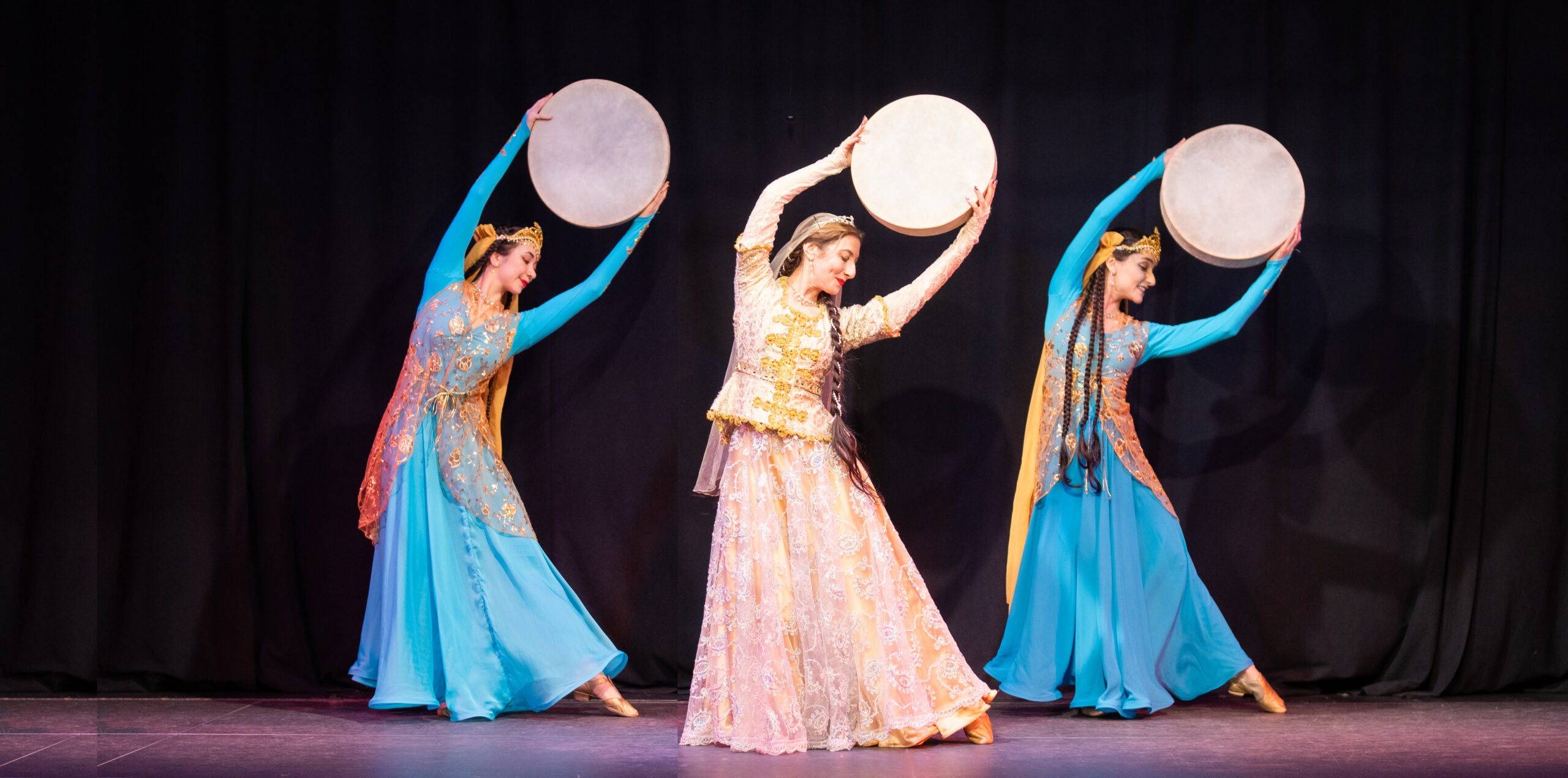 Dances are accompanied by musicians Neema Hekmat and Nariman Assadi on ancient Iranian instruments: santur, a 72 string hammered dulcimer; tonbak, an Iranian goblet drum; and daf, an ancient hand-held frame drum.