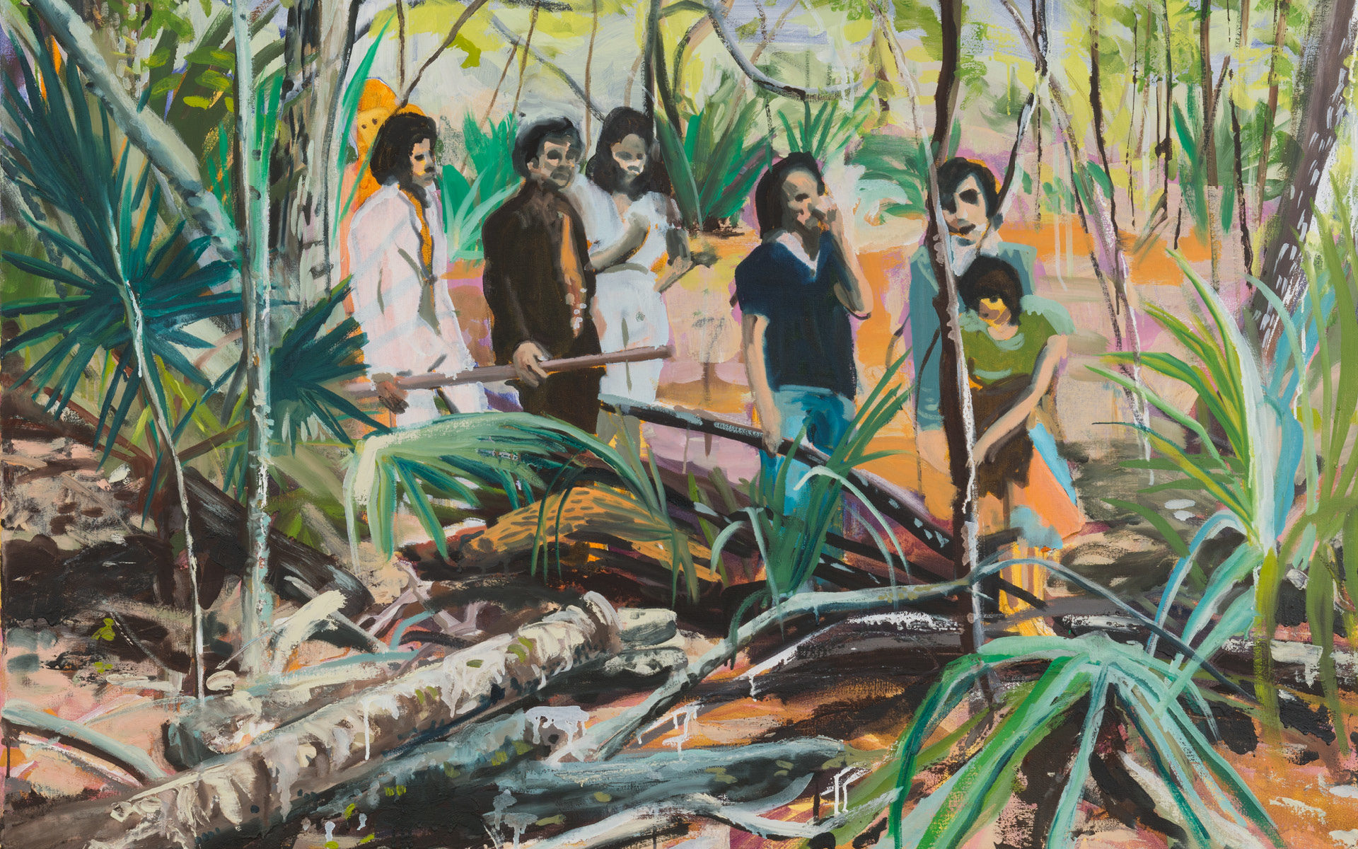 Image: The New Arrivals, 2017, by Maia Cruz Palileo (American, b. 1979). Oil on canvas. Courtesy of the artist and Monique Meloche Gallery.
