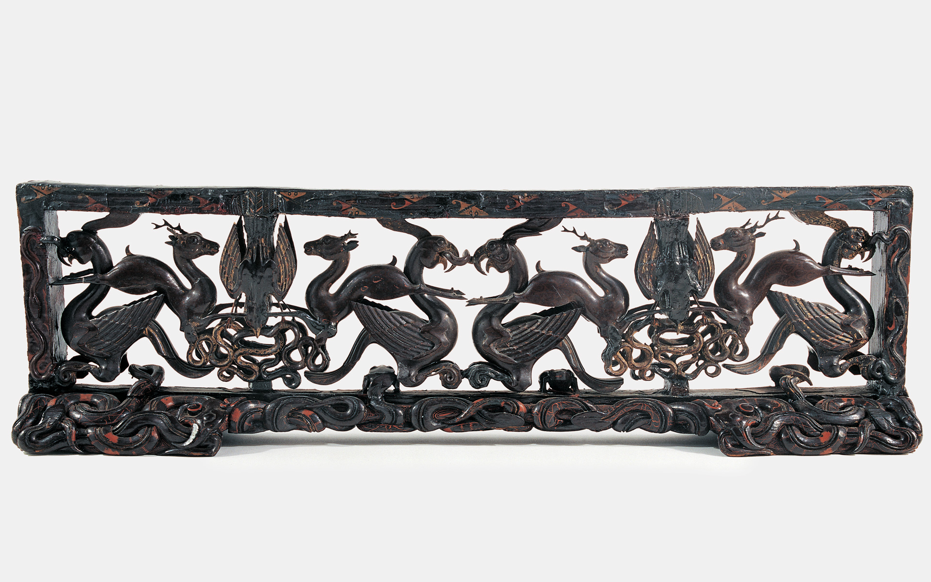 See all upcoming events in this series.Image: Stand with openwork designs of phoenixes, deer, snakes, and mythical beasts, approx. 300 BCE. China; Hubei province. Warring States period (475-221 BCE). Excavated from Chu tomb no. 2 at Jiuliandun, Zaoyang, 2002. Lacquer on wood. Hubei Provincial Museum. Photograph © Hubei Provincial Museum.
