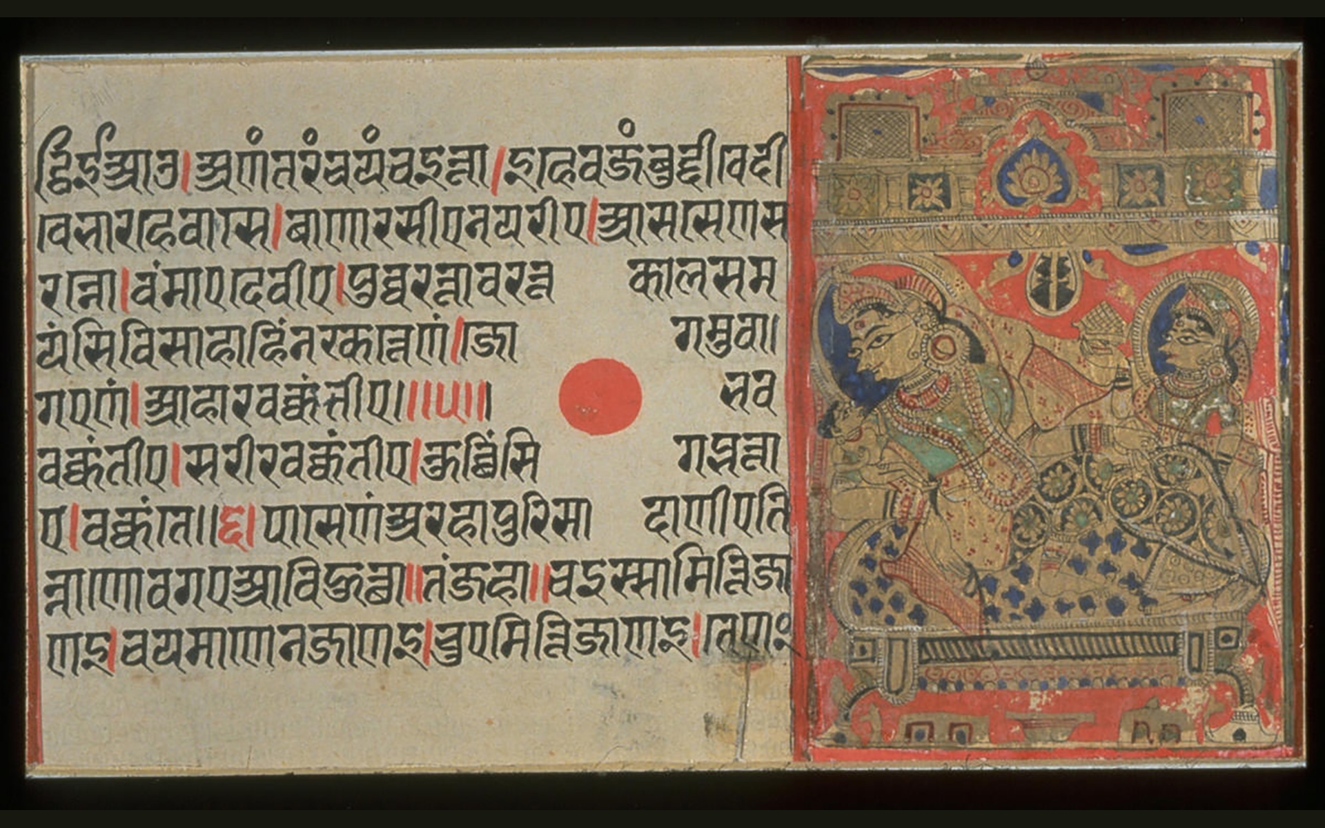 Image: The birth of the Jain teacher Parshvanatha, from a manuscript of the Kalpasutra (Book of Ritual), approx. 1475–1500. India; Gujarat state. Opaque watercolors on paper. Asian Art Museum, Gift of George Hopper Fitch, B86D7.