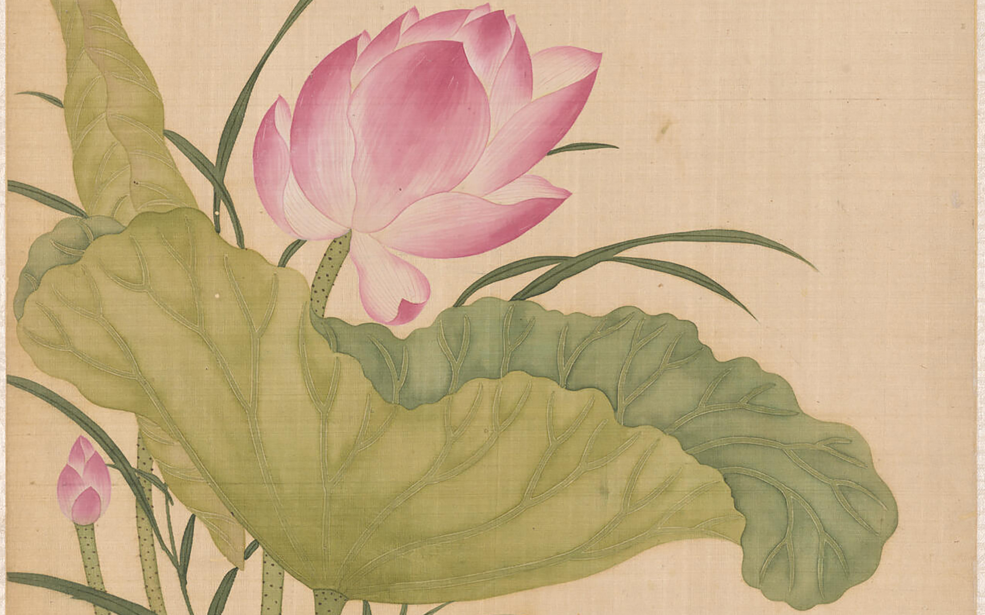 Image: Lotus, from the flowers of the twelve months: June, approx. 1670-1710. By Yun Bing (Chinese, 1670–1710). Qing dynasty (1644–1911). Ink and colors on silk. Asian Art Museum, The Avery Brundage Collection, B65D49.f. Photograph © Asian Art Museum of San Francisco.