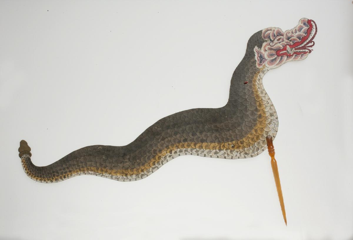 Image: Naga (Serpent) approx. 1920–1945. Indonesia; Surakarta (Solo), Java. Hide with pigments, horn. Gift of Marsha Vargas Handley, F2009.20.21.